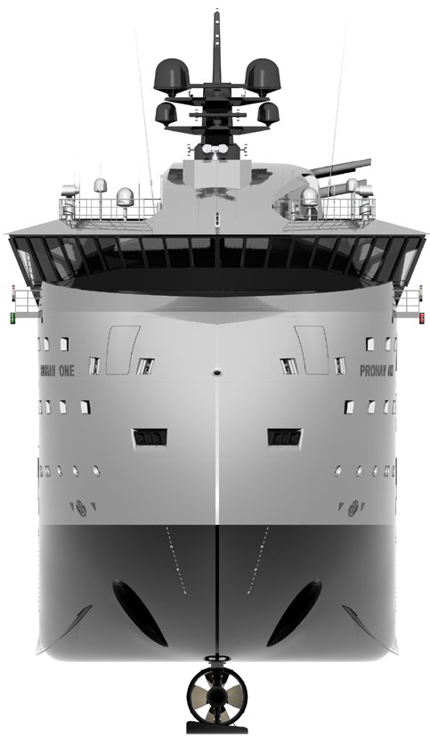 Fartøyets modell bygger på Ulstein Design & Solutions FX501 fartøymodell spesialkonstruert for Prohav.